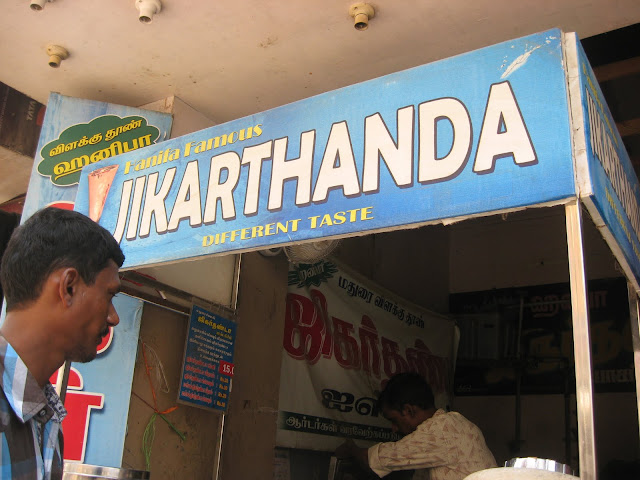 Tamilnadu is probably the only state in India which has consistently refused to accept Hindi as the national language, and in my experience, people avoid talking in Hindi even if they know the language. In such a situation, it is probably ironic that such a bastion of Tamil culture and anti-Hindi agitations should have its most popular beverage named in Hindi! Apparently, Jigarthanda was introduced to Madurai by its Mohemmedan rulers, which explains the origin of the name.
