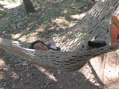 Samhith relaxes on a hammock. Every tent and hut is provided with a hammock just outside.