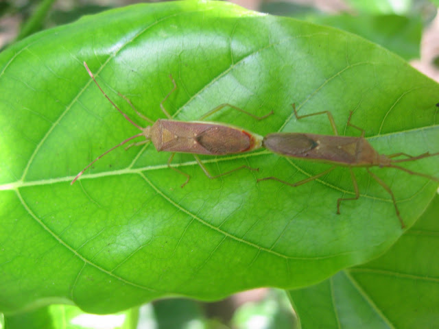 We saw them everywhere! Here are a pair of Shield bugs mating on a leaf.....