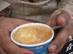 | That's the board in Tamil with the rates... a small glass costs Rs. 15, a medium one Rs. 20 and the special - that means a large glass - Rs. 30. The glass you see in the pic is the medium one. |