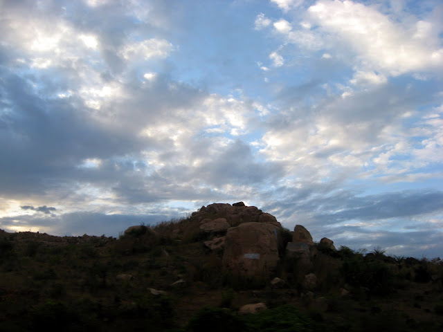 I am back at last from my trip - the last one of 2011 and also the first one of 2012. I was accompanied throughout by some wonderful weather, the cyclone Thane throwing no hurdles in my path, just a lot of clouds and some rain to enliven our travel! For Skywatch Friday today, here are some random scenes from my trip!