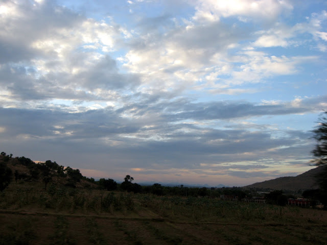 I am back at last from my trip - the last one of 2011 and also the first one of 2012. I was accompanied throughout by some wonderful weather, the cyclone Thane throwing no hurdles in my path, just a lot of clouds and some rain to enliven our travel! For Skywatch Friday today, here are some random scenes from my trip!