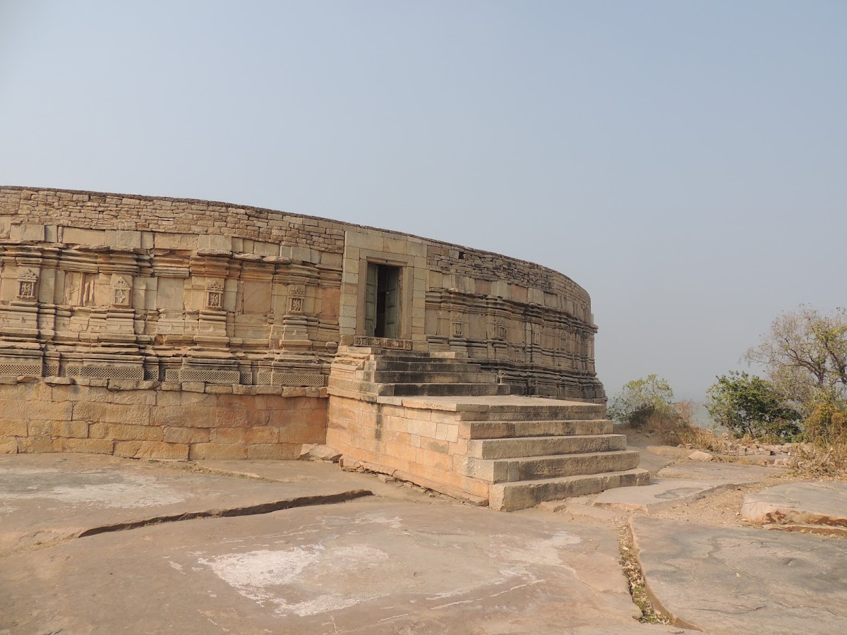 We sat on the steps, enjoying the feel of the flowing water on our feet, staring into the distance, where the single hillock rose, and the circular walls of the temple rose above it. This was our first sight of the Chausath Yogini temple at Mitavali. (Also spelled as Mitawali, Mitaoli or Mitauli).