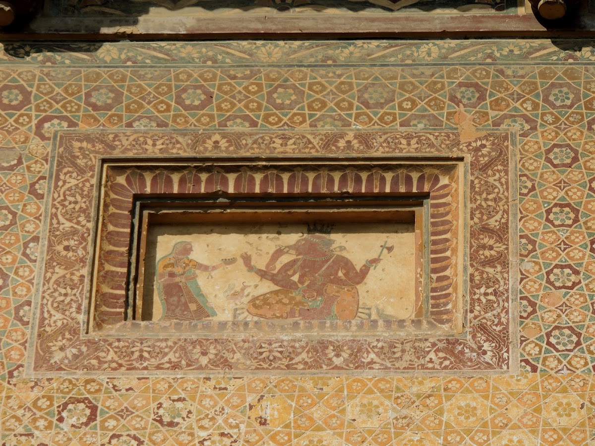 | This room seems to be painted all over with such detailed work. However, it has recently been cleaned, and locked up, to prevent any damage to the paintings. Sadly, I had to click this through a gap in the door, which is why none of these paintings are clear in the photographs. |