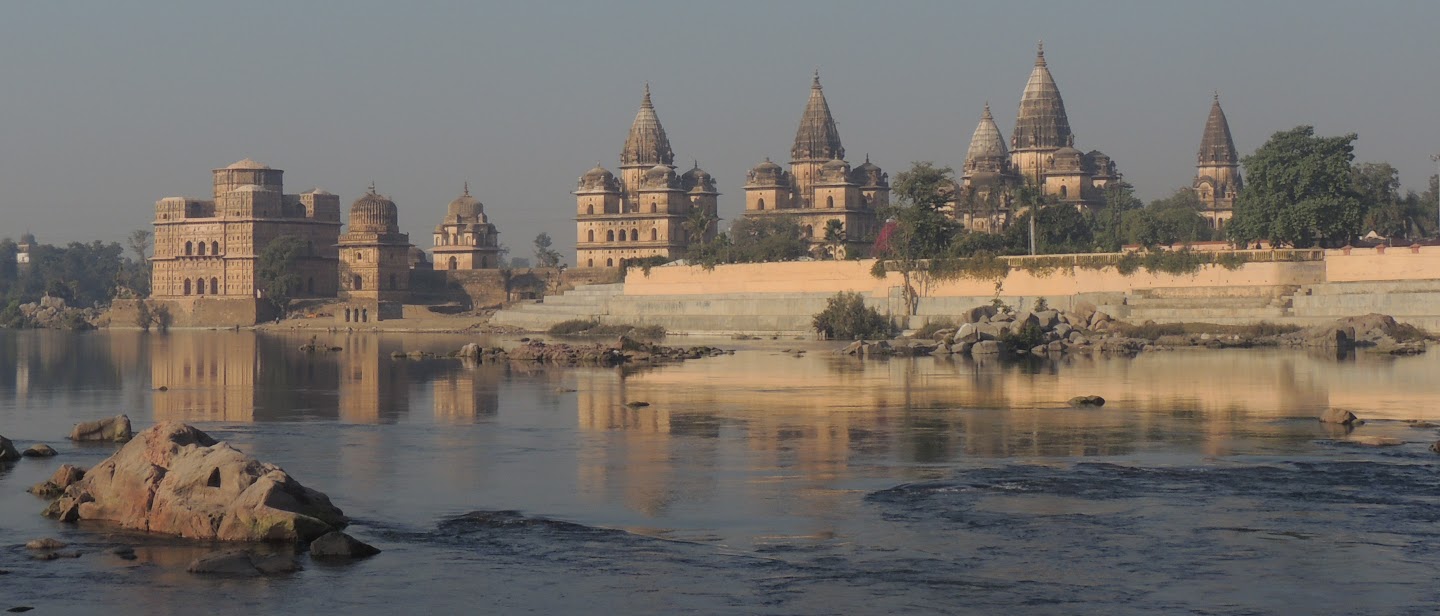 | Morning view of the cenotaphs and the Betwa river |