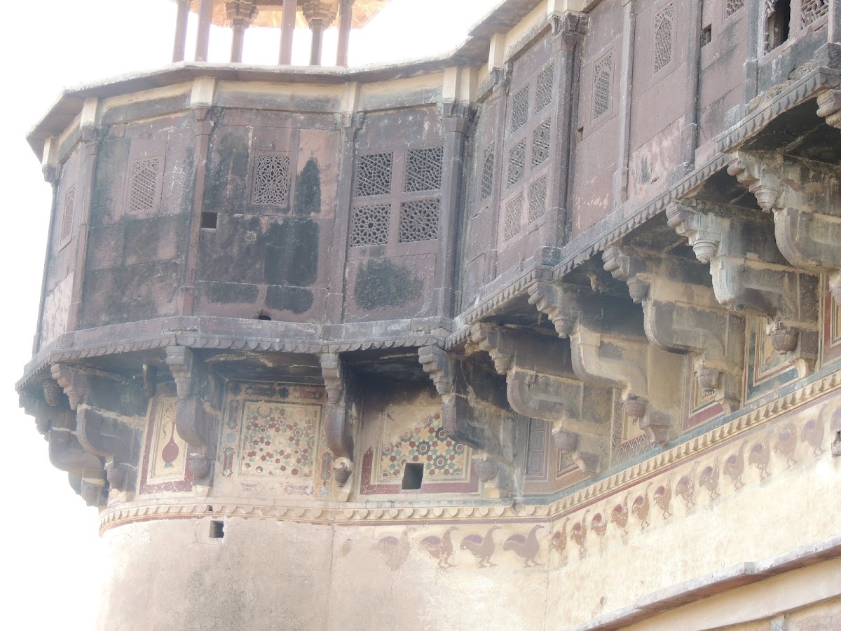 | Outer view of the Jehangir Mahal. Notice the intricate Jaalis and the paintings |