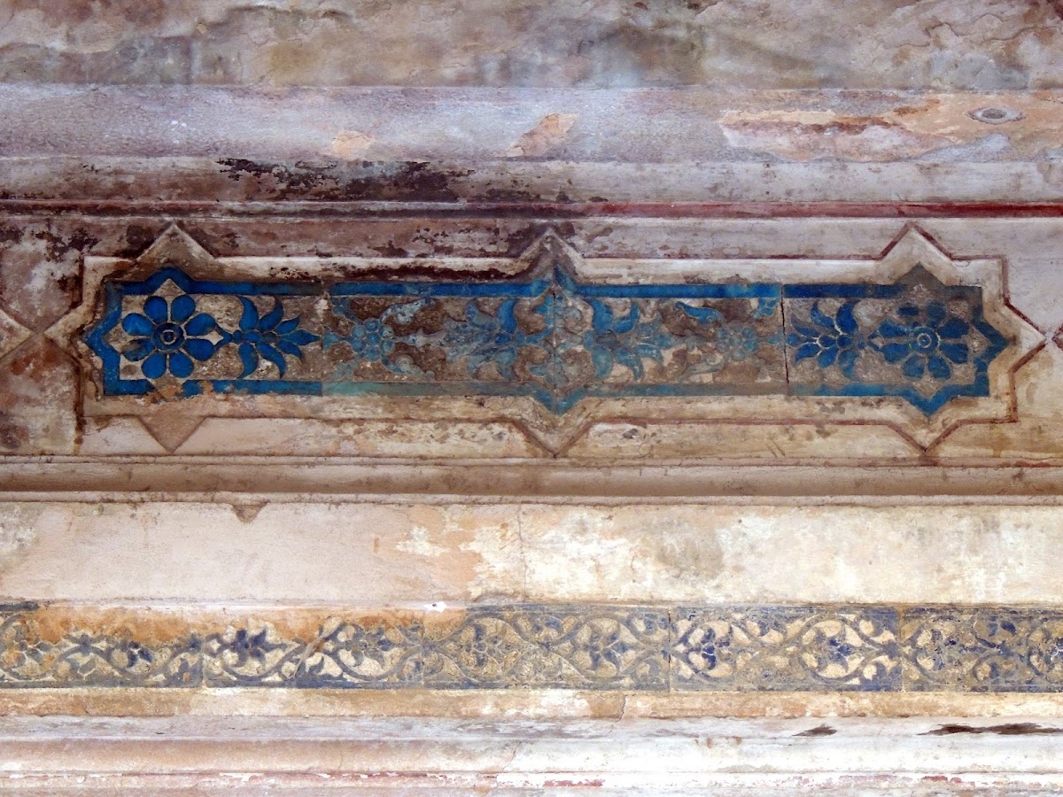 | the bright blue tiles continue to shine despite the condition of the rest of the structure! |