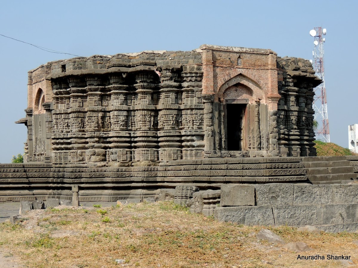 At the temple, we met Dr. Bugdane, a resident of Lonar who has done extensive research on the Crater Lake, as well as its temples. He has also published a book on Lonar, and was a fount of information. Pointing towards the brickwork, he spoke of early restoration work when the idol was installed and prayers were resumed in the temple.