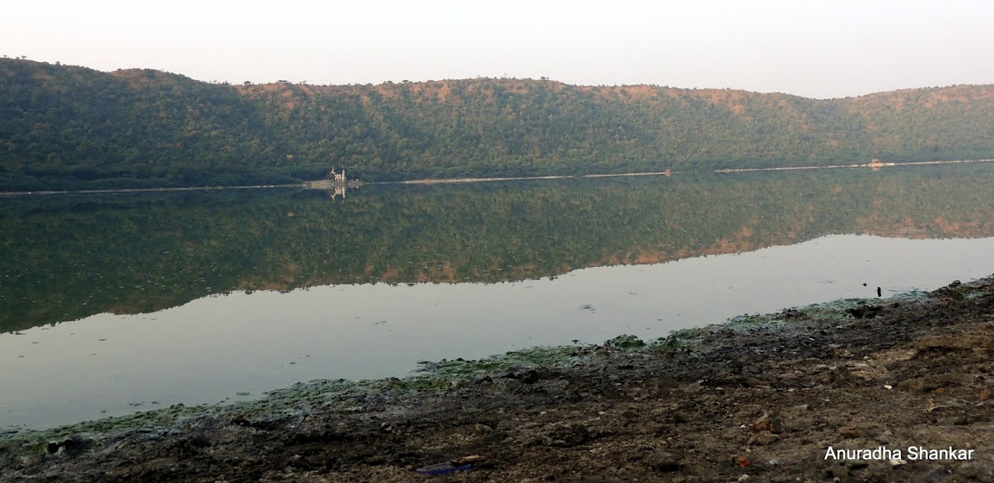 So many shades of green – from the bright green of the leaves to the dull green mixed with brown of the mountains. Even the lake was green, though it was difficult to decide if it was the colour of the water, or simply the reflection. As the setting sun cast its last light of the day on the water, the lake appeared to be a jewel, hidden away in the mountains. We were at Lonar, the site of India’s only meteoric crater lake, and from my vantage point on the balcony of the MTDC resort, as I watched the shades of green grow dark and disappear into the darkness, I wondered if I would be able to climb down the crater and discover some of the mysteries it held.