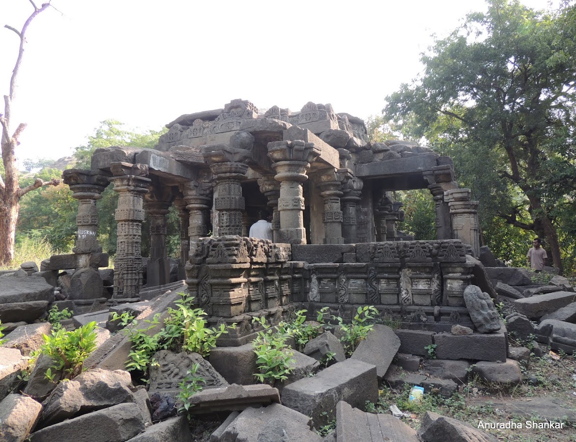 The rough path led us to a better maintained one, and here we found even more temples, in various states of ruin. Two of these were named Yagneshwar and Kumareshwar temples, from the names freshly painted on the old stones, but little remained of their grandeur or their original shrines.