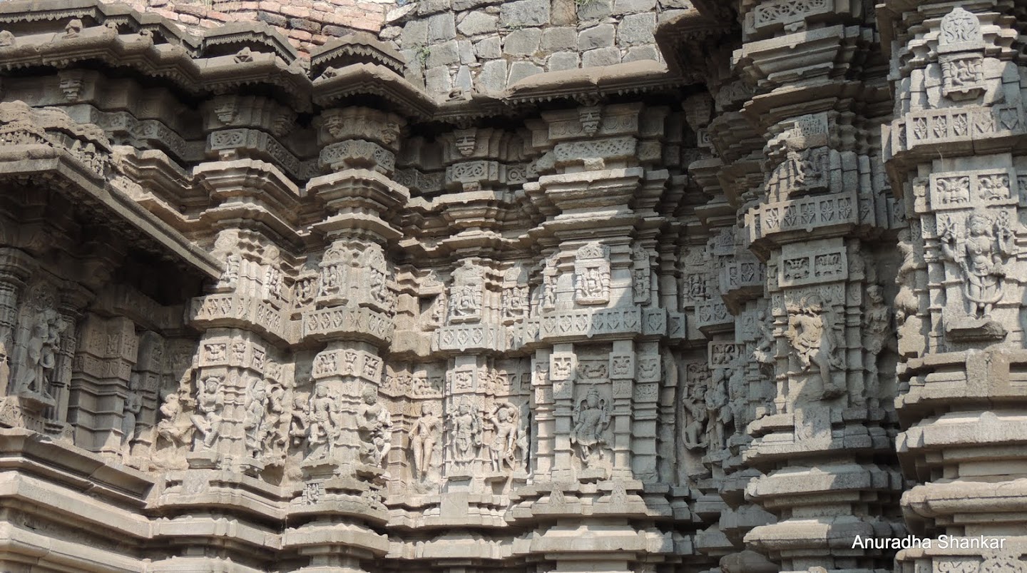 The temple, built of black stone, sometime around the 10th century, has intricate carvings, but no spire. There is some doubt whether the temple was never completed, or if it was broken at some point. The temple has the garbagriha (the central shrine), a mandapa (pillared hall) and an antarala (passage) and there are profuse carvings on the pillars, lintels, ceilings and the outer walls. The sculptures represent deities as well as erotic scenes, leading to comparisons with Khajuraho.