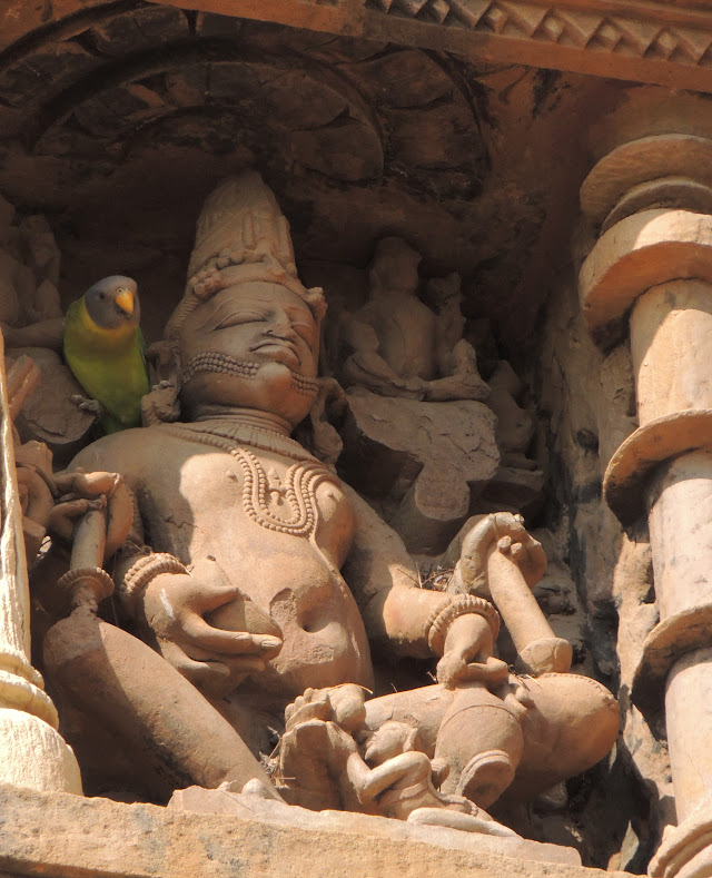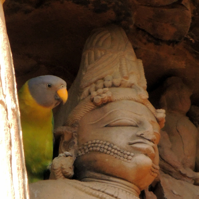 clicked at Khajuraho, thanks to this female Plum-Headed Parakeet which chose