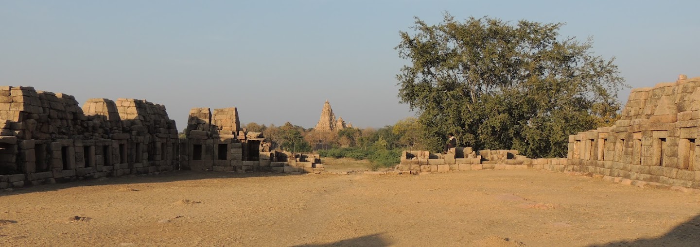| At the 64 Yogini Temple.The 64 niches are on the sides, and you can see the spire of the Kandariya Mahadev from here |