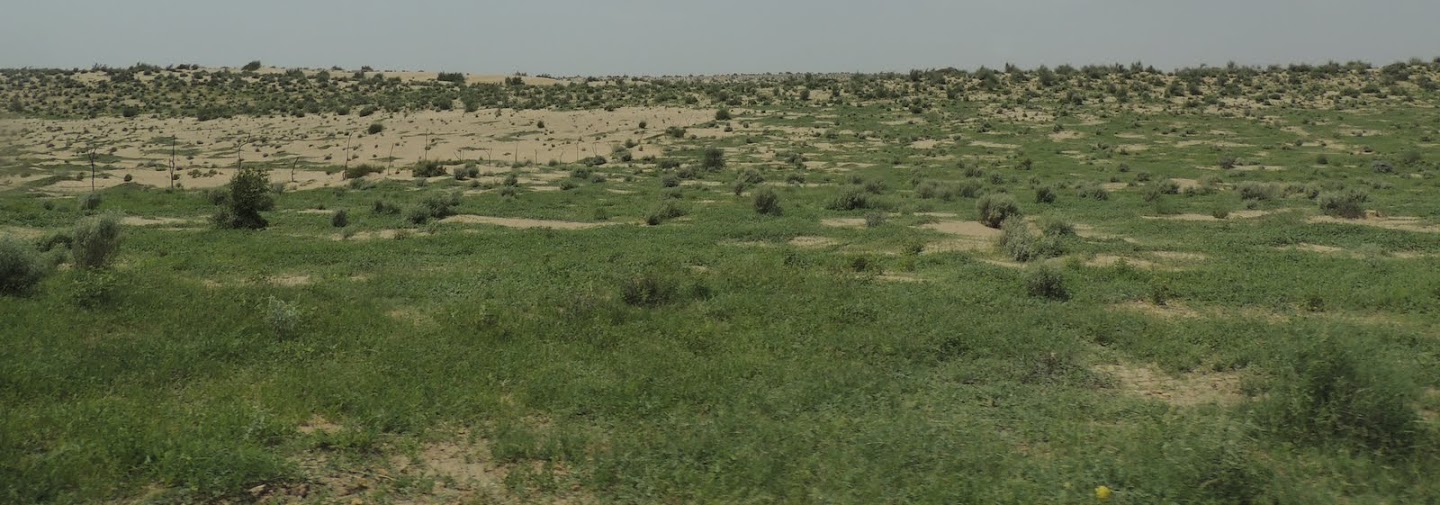| These roads are usually covered with sand, with the dunes constantly moving. Even our drivers were surprised to see this much greenery which had appeared within just a few weeks of the rain! |