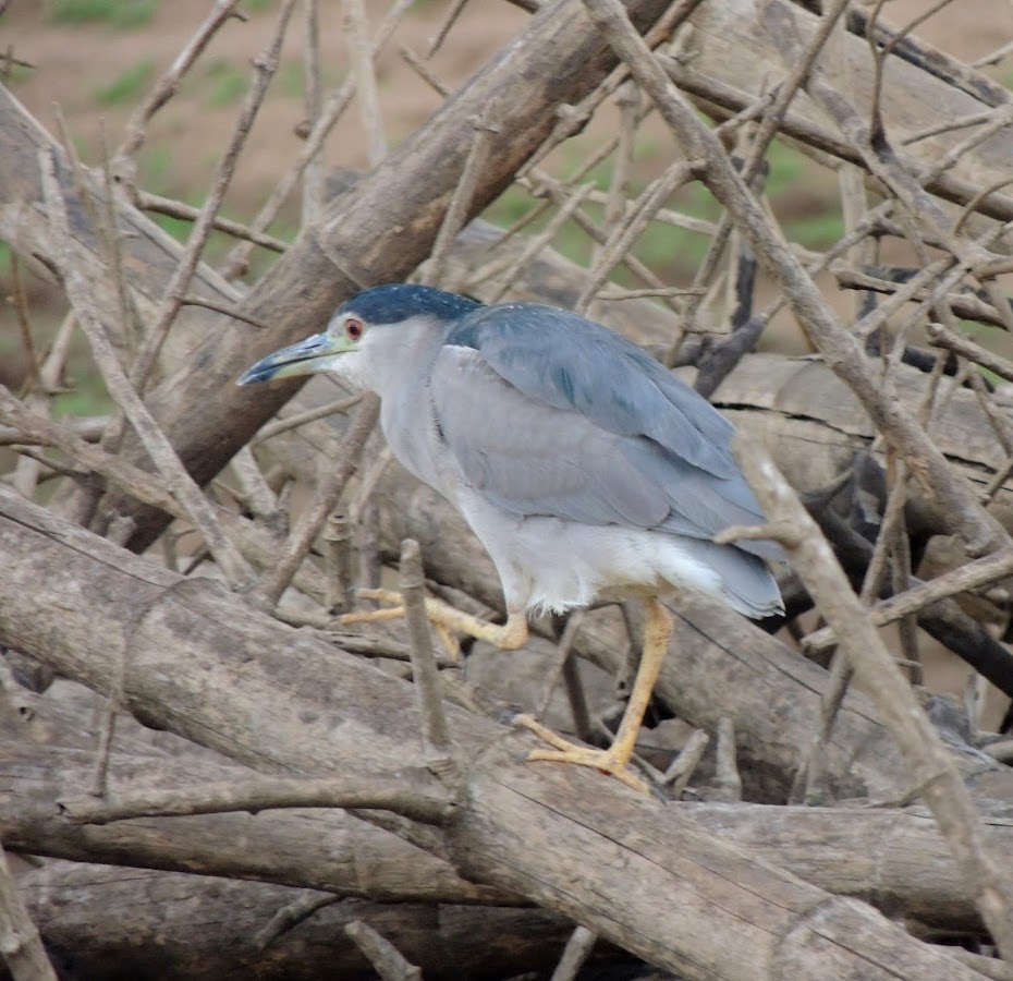 And hidden in a bunch of fallen branches, we spotted a flock of Night Herons, both, adult and juvenile!