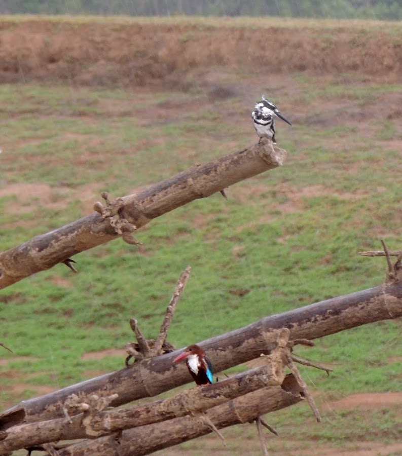 Pied Kingfisher (top) and White Throated Kingfisher (bottom)