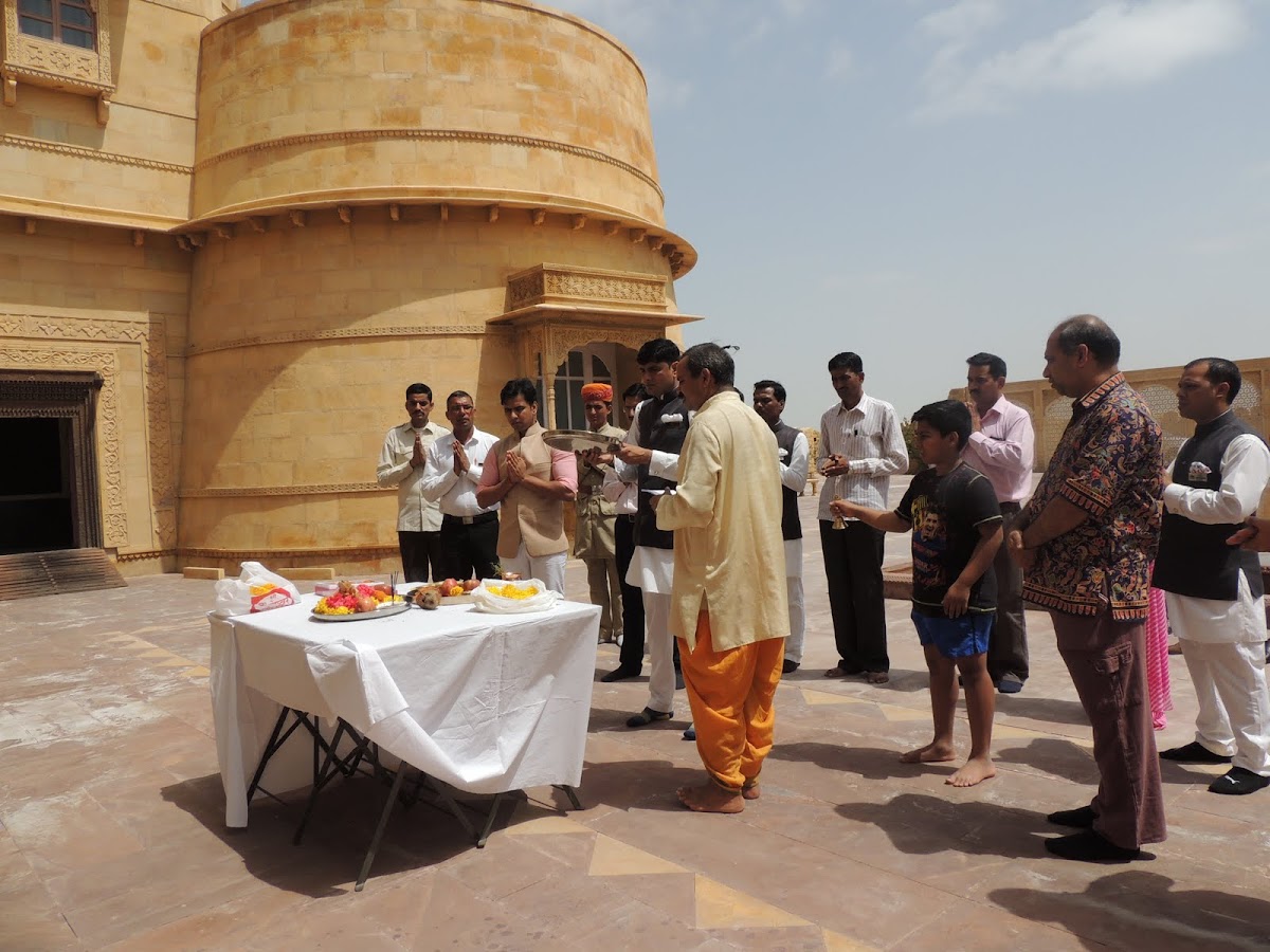 We had arrived at Suryagarh early that morning, and, in the course of our travels, had almost forgotten that it was Ganesh Chaturthi. As the priest chanted hymns, Shankar joined in, and someone handed Samhith the bell, which he rang with gusto! As I happily clicked away, I reflected on the course of events which had brought us here, to be a part of this intimate celebration.